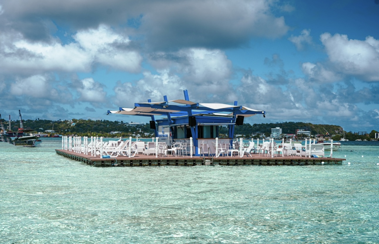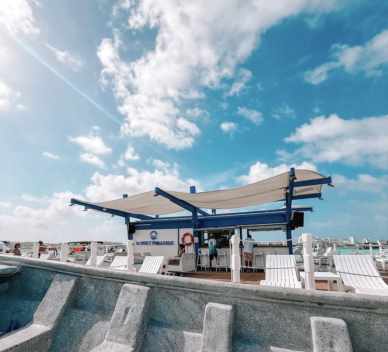 Aquí podrás disfrutar bebidas frías, deliciosa comida, zonas para relajarte bajo el sol, espacios para nadar alrededor del bar y la energía única de la isla. Además, desde el bar se aprecian varias embarcaciones y paisajes perfectos para fotos inolvidables.